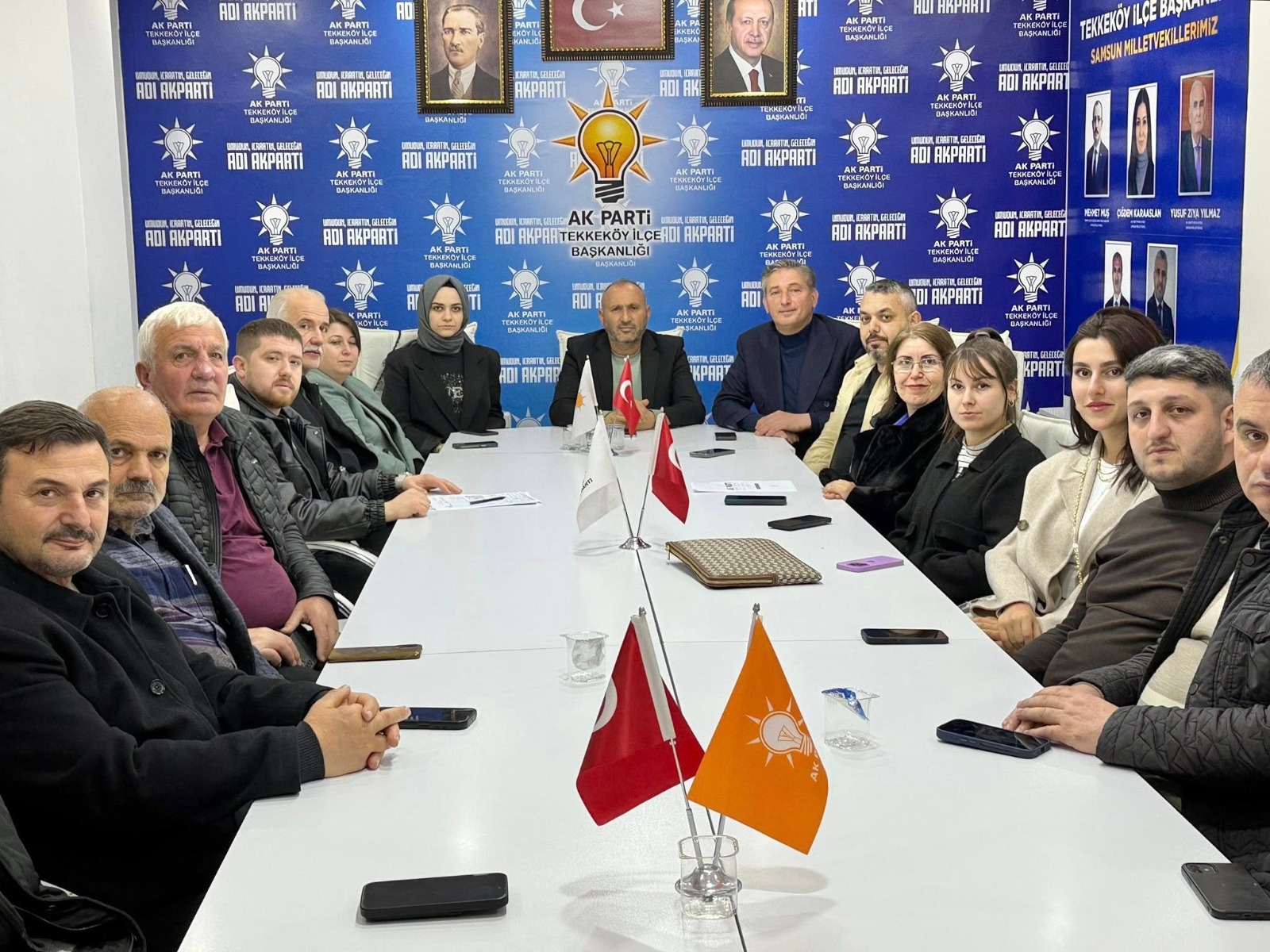 AK Parti Tekkeköy İlçe Başkanlığı binasında düzenlenen toplantıya; Belediye Başkanı Mustafa Candal’ın yanı sıra İlçe Başkanı Üzeyir Bahadır, İlçe Koordinatörü Ayşe Bengisu Karaduman, Kadın Kolları Başkanı Sevcan Göker ve yönetim kurulu üyeleri katıldı. Toplantıda 2025 yılı boyunca yürütülen çalışmalar gözden geçirilirken, 2026 yılına yönelik projeler ve hedefler masaya yatırıldı.