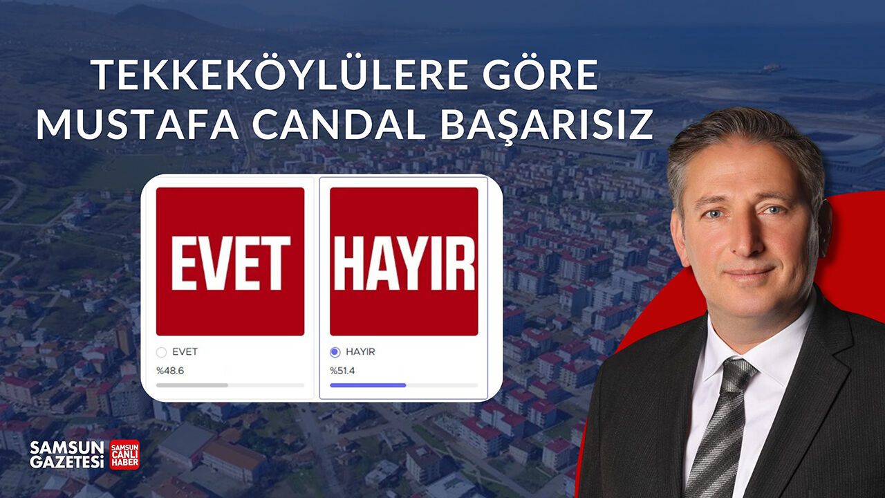 Samsun Medya Grubu, sosyal medya hesapları ve internet haber sitesi üzerinden, Tekkeköy Belediye Başkanı Mustafa Candal'ın görev performansına ilişkin anket düzenledi. Yerel yönetimlerin 2024-2029 döneminin ikinci yılında gerçekleştirilen ankete vatandaşlar yoğun ilgi gösterdi. Katılımcıların yüzde 48.6'sı “Evet”, yüzde 51.4'ü ise “Hayır” oyu verdi.