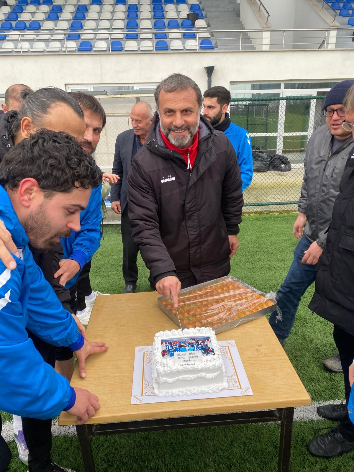 Antrenmanın ardından takım içinde ikinci bir sürpriz yaşandı. Teknik ekip ve futbolcular, Mustafa Hoca’nın doğum gününü pasta keserek kutladı. Samimi görüntülere sahne olan kutlama, takım içinde birlik ve beraberlik mesajı verdi.
