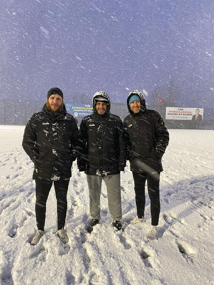 Hem kondisyon depolayan hem de keyifli anlar yaşayan futbolcular, kar altında antrenman yapmanın zorluklarına rağmen çalışmalarına büyük bir motivasyonla devam etti.