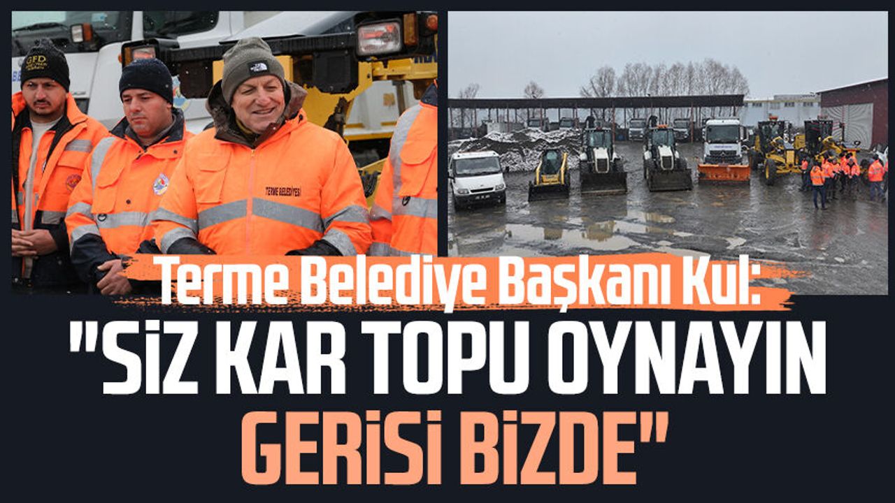 Meteorolojinin, perşembe sabah saatlerinden başlamak üzere Terme’de çok ciddi kar yağışı beklendiğine ilişkin uyarıda bulunduğunu kaydeden Başkan Kul, “Karla mücadele çalışmalarında 70 personelimiz, 30 araç ve iş makinemiz karla mücadelede görev alacak. Yaklaşık 1750 kilometrelik yol ağımızda karla ilgili sıkıntı yaşatmamanın gayretini ortaya koyacağız. Şu anda araç, ekipman ve tuz stoku açısından bir sorunumuz yok. Tüm personelimiz koordine edilmiştir. Siz kışın tadını çıkarın, kar topu oynayın, gerisini biz halledeceğiz.” dedi.