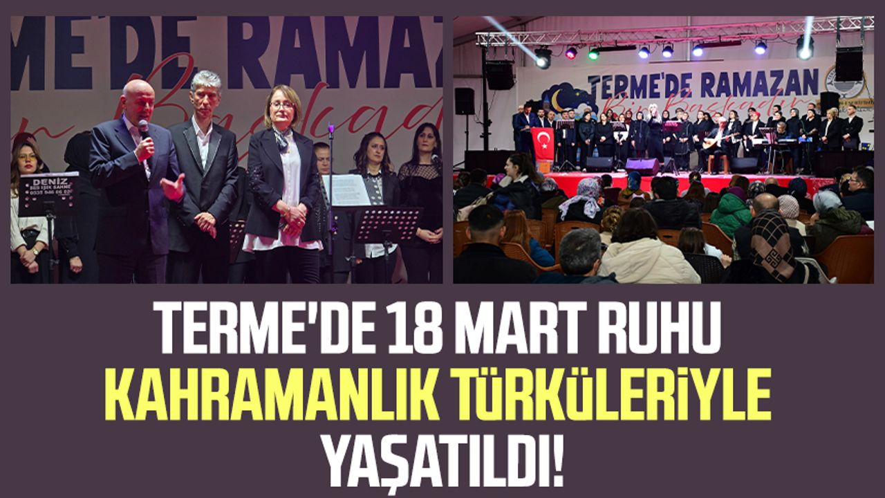 Terme’de 18 Mart Şehitleri Anma Günü ve Çanakkale Deniz Zaferi dolayısıyla "Kahramanlık Türküleri Konseri" düzenledi. Kahramanlık türküleri ve ağıtlarının seslendirildiği programa katılan Termeliler duygu dolu anlar yaşadı. Terme Kent Konseyi tarafından emeklisinden memura, işçisinden ev hanımına kadar farklı meslek guruplarından oluşturulan amatör korist ve solistler seslendirdikleri kahramanlık türküleri ve ağıtlar ile sanatseverlere bir müzik yolculuğu sundu. Konserde kahramanlık türkülerini seslendiren koro üyeleri, dinleyiciler tarafından ayakta alkışlandı. Konserde söylenen türkülere ve ağıtlara eşlik eden izleyiciler, zaman zaman duygulandı.