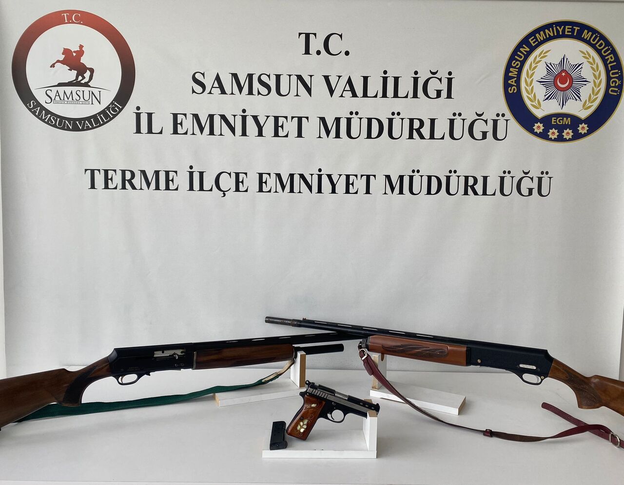 Samsun İl Emniyet Müdürlüğü Terme İlçe Emniyet Müdürlüğü ekipleri tarafından gerçekleştirilen operasyonda, iki ayrı ikamette arama yapıldı. Aramalarda 1 adet ruhsatsız tabanca ile 2 adet ruhsatsız tüfek ele geçirildi.