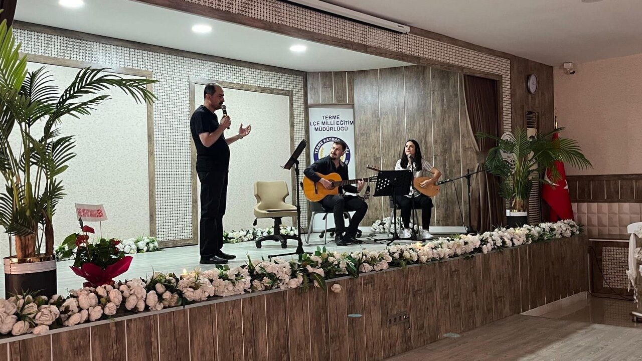 Halk Eğitimi Merkezi konferans salonunda gerçekleştirilen programda ilçede görev yapan öğretmenler tarafından bestelenmiş şiirler seslendirildi.