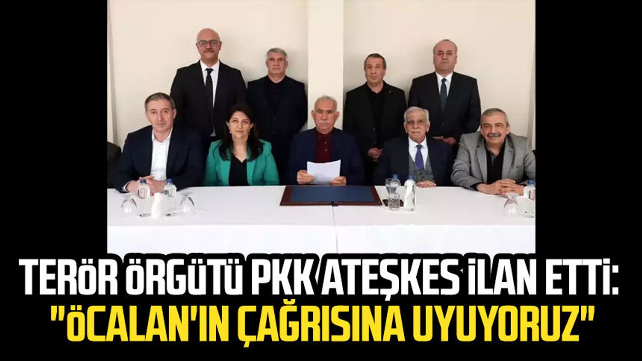 PKK lideri Abdullah Öcalan, örgütün silah bırakması ve kendini feshetmesi yönünde çağrıda bulundu. Açıklamasında tüm sorumluluğu üstlendiğini belirten Öcalan, Pkk'nın kongre toplayarak devlet ve toplumla uyum içinde yeni bir sürece adım atması gerektiğini ifade etti. Bu çağrının ardından terör örgütü PKK yaptığı açıklamada, bugünden itibaren geçerli olmak üzere ateşkes ilan ettiklerini belirterek, Abdullah Öcalan'ın çağrısına uyacaklarını belirtti.