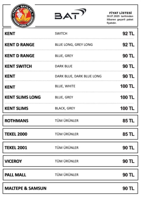 JTI grubunun ardından British American Tobacco (BAT) grubundaki sigaralara da zam geldi. Yapılan zammın ardından en ucuz sigara fiyatı 85 liraya çıkarken, en yüksek sigara ise 100 lira oldu.