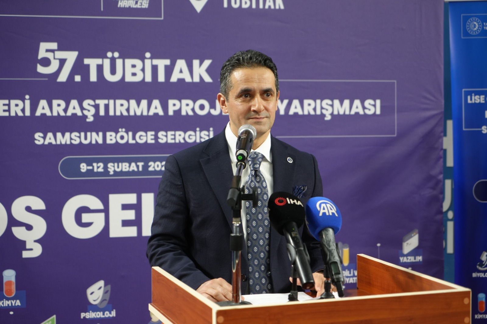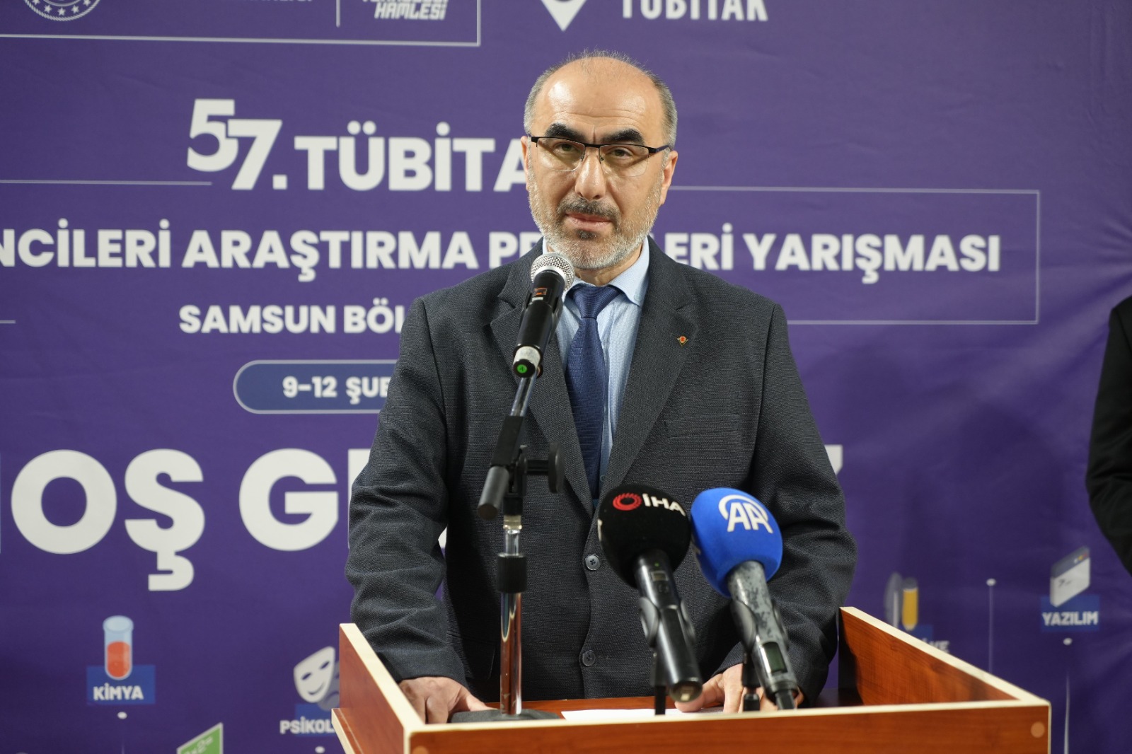 Açılış konuşmalarını gerçekleştiren TÜBİTAK Proje Yarışmaları Samsun Bölge Koordinatörü Prof. Dr. Yıldıray Topcu, "Bu yıl bölgemizde 12 farklı alanda toplam 3 bin 142 proje başvurusu yapılmıştır. Türkiye genelinde ise 29 bin 739 proje ile yarışma tarihinin en yüksek başvuru sayısına ulaşılmıştır. Bu tablo, ülkemizde bilim ve araştırmaya olan ilginin her geçen gün arttığını göstermekte ve Türkiye Yüzyılı hedeflerimiz ile geleceğe dair umutlarımızın ne kadar güçlü temellere dayandığını ortaya koymaktadır. Hedefimiz, hem proje sayısını hem de proje niteliğini daha da ileri taşımaktır. Projelerin ön inceleme ve değerlendirme süreçlerinde 30 farklı üniversiteden 210 öğretim üyesi görev almıştır. Her proje, alanında uzman üç jüri üyesi tarafından titizlikle değerlendirilmiş ve bu süreç sonunda 12 alandan 100 proje bölge sergisine davet edilmiştir. Ondokuz Mayıs Üniversitemizin ev sahipliğinde gerçekleştirilen bu sergi sonunda finalist olarak seçilecek projeler, Mayıs ayında Ankara'da düzenlenecek Türkiye Finalinde bölgemizi temsil edecektir. TÜBİTAK'ın düzenlediği bu yarışmaların temel amacı; gençlerimizi düşünmeye, sorgulamaya, araştırmaya ve karşılaştıkları problemlere bilimsel çözümler üretmeye teşvik etmektir. Bu süreçte verilen ödüller bir amaç değil, gençlerimizi bilimsel çalışmalara yönlendiren birer motivasyon aracıdır. Asıl kazanım; öğrencilerimizin ve danışman öğretmenlerimizin bu süreçte edindikleri bilgi, deneyim ve becerilerdir" dedi.