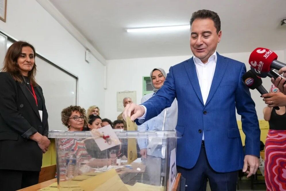 DEVA Partisi Genel Başkanı Ali Babacan, Cumhurbaşkanı Seçimi ve 28. Dönem Milletvekili Genel Seçimi için oyunu kullanmak üzere saat 10.15'te Bilkent Emlak Bankası Ortaokulu'na geldi.