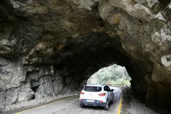 Giresun-Sivas arasındaki ulaşımı sağlayan kara yolunda 6 metre yüksekliği ve 35 metrelik uzunluğuyla halen sağlamlığını koruyan tünelin oyulmuş kaya yapısı dikkati çekiyor.