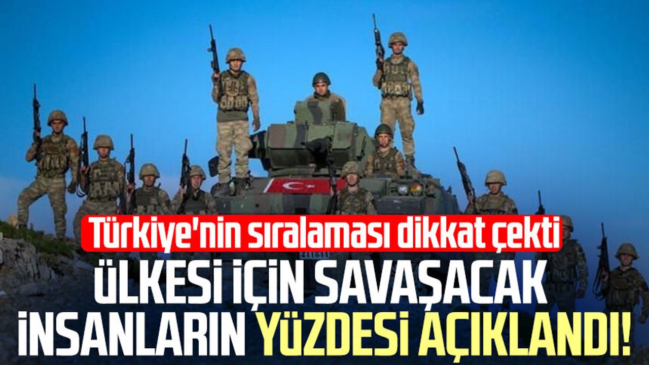 WIN/Gallup International tarafından yapılan araştırmada ülkesi için savaşacak insanların yüzdesi belirlendi. Türkiye, ABD, Japonya ve Hollanda gibi ülkeleri geride bırakarak üst sıralarda yer aldı.