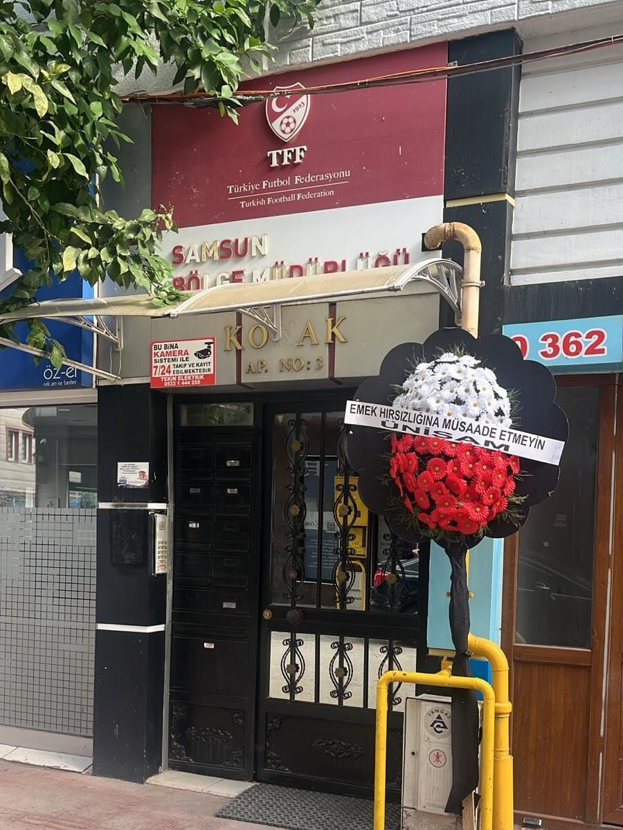 Samsun, İstanbul ve Ankara'daki Üniversiteli Samsunsporlular Derneği temsilcilikleri, Gaziantep FK maçında tartışmalı kararlar veren hakem Batuhan Kolak'ı protesto etmek amacıyla anlamlı bir eylem gerçekleştirdi. Dernek üyeleri, Türkiye Futbol Federasyonu (TFF) il binalarının önüne "EMEK HIRSIZLIĞINA MÜSAADE ETMEYİN" yazılı siyah çelenk bıraktı.