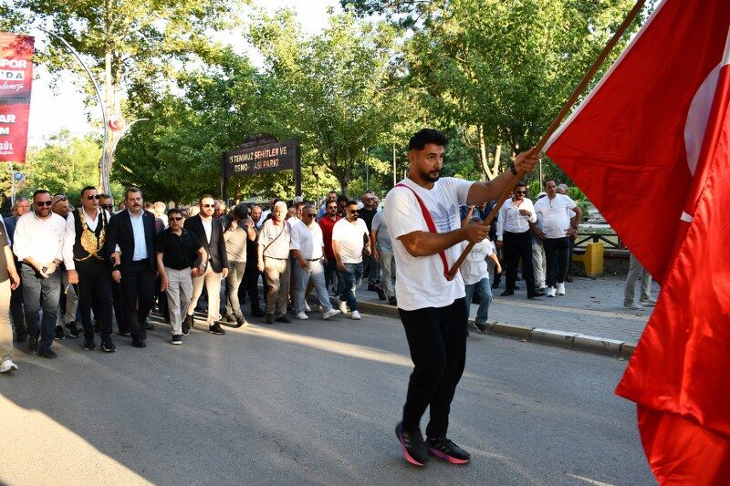 Yürüyüşe Vezirköprü Kaymakamı Özgür Kaya, Belediye Başkanı Murat Gül, İlçe Emniyet Müdürü Ahmet Çelik, Türkiye Güreş Federasyonu Başkanı İbrahim Türkiş, Kunduz Güreş Ağası Halil İbrahim Çiçek, İlçe Gençlik ve Spor Müdürü Mehmet Uyar, Ak Parti İlçe Başkanı Muzaffer Çil, CHP İlçe Başkanı Nazım Kale, Vezirköprü Dernekler Federasyonu Başkanı Yahya Öztürk ile güreş için Türkiye’nin farklı şehirlerinden gelen güreş ağaları, güreşçiler katıldı.
