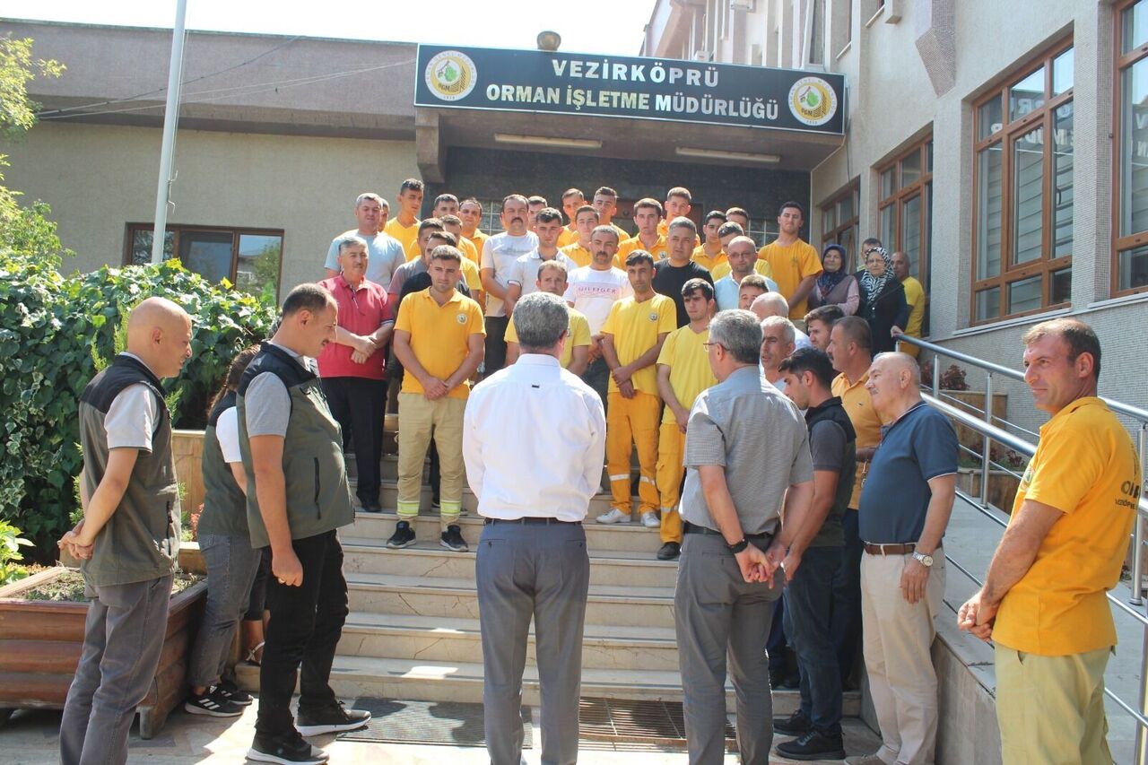 Programda konuşma yapan Vezirköprü Orman İşletme Müdürü Mecit Koçak da “Fedakarca 7/24 çalışan canları pahasına orman yangınlarında korkusuzca mücadele eden işçi kardeşlerimize kadroları hayırlı ve uğurlu olsun.” ifadelerini kullandı.