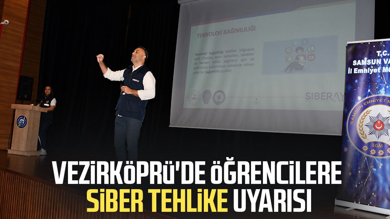 Samsun İl Emniyet Müdürlüğü Siber Suçlarla Mücadele Şubesi ekiplerince yürütülen Siberay Projesi kapsamında Vezirköprü'de öğrencilere yönelik eğitim gerçekleştirildi.