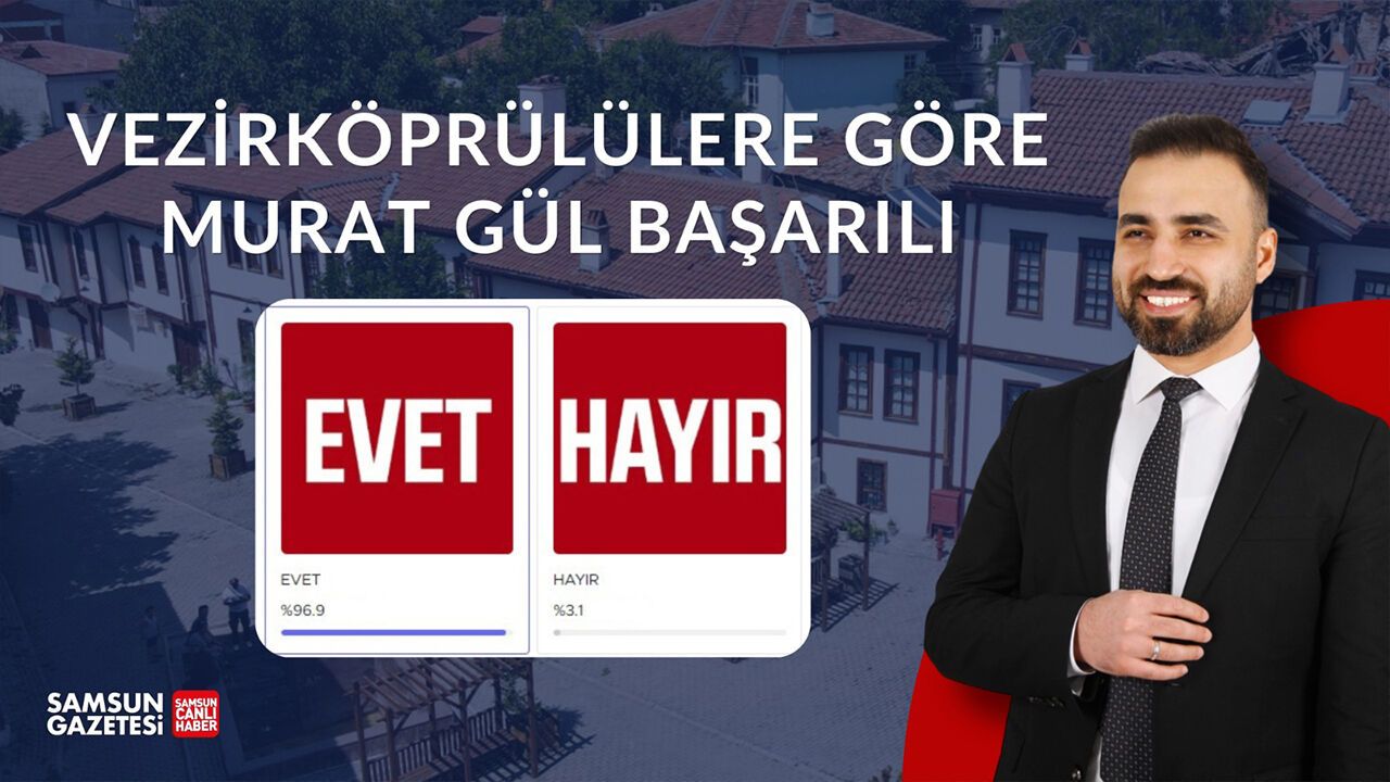 Samsun Medya Grubu, sosyal medya hesapları ve internet haber sitesi üzerinden, Vezirköprü Belediye Başkanı Murat Gül'ün görev performansına ilişkin anket düzenledi. Yerel yönetimlerin 2024-2029 döneminin ikinci yılında gerçekleştirilen ankete vatandaşlar yoğun ilgi gösterdi. Katılımcıların yüzde 96.9'u “Evet”, yüzde 3.1'i ise “Hayır” oyu verdi.
