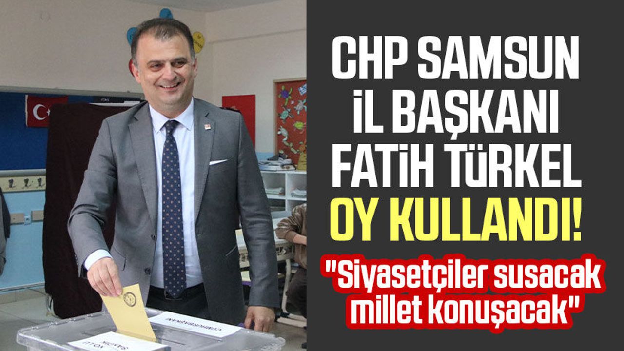 Samsun CHP Samsun İl Başkanı Fatih Türkel oy kullandı: "Siyasetçiler susacak millet konuşacak" 28.05.2023 - 16:54 28.05.2023 - 16:54 Abone Ol Gelişmelerden haberdar olmak istiyor musunuz? Google News’te Samsun Gazetesi | Samsun Haber | Samsun Haberleri sitemize abone olun. Abone Ol