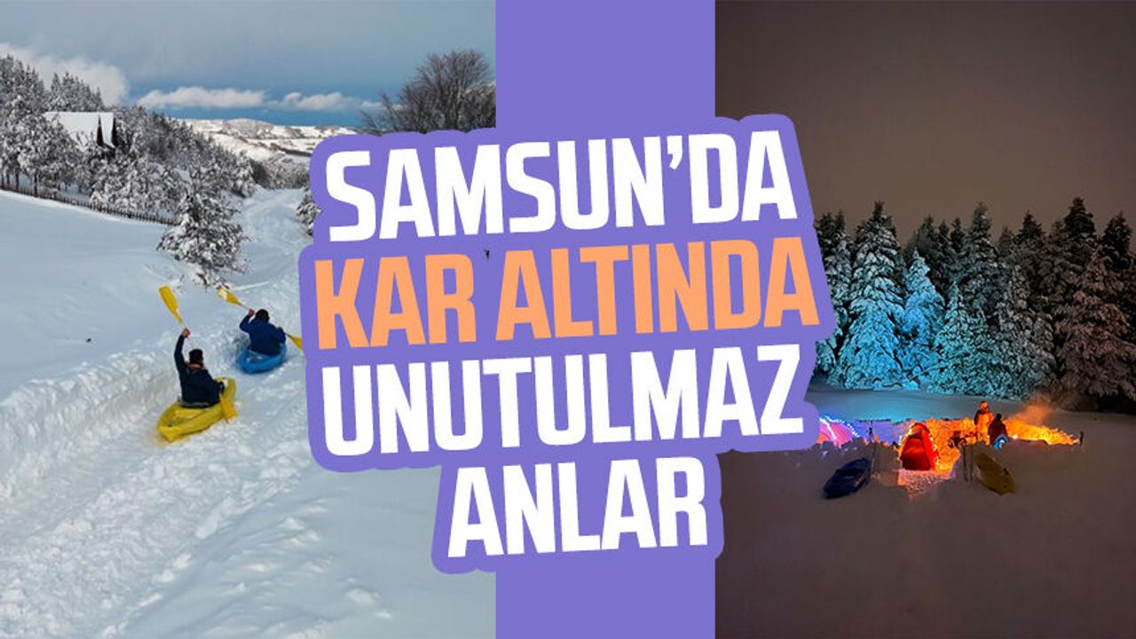 Samsun'da kar altında kamp! Unutulmaz anlar