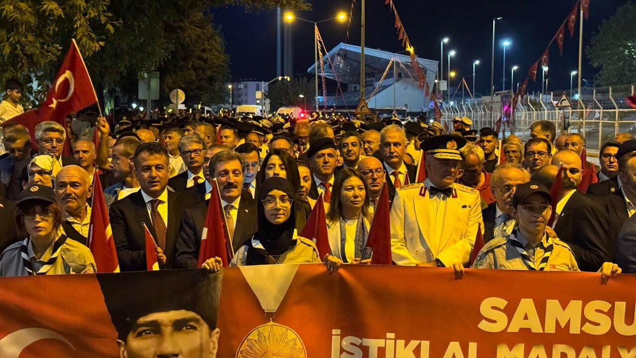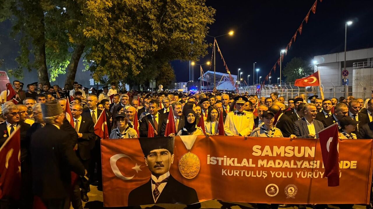 Samsun Müzesi önünden başlayan yürüyüş, Kurtuluş Yolu boyunca protokol üyeleri ve vatandaşların yoğun katılımıyla gerçekleştirildi. Ellerinde Türk bayrakları taşıyan binlerce kişi, askeri bandonun çaldığı marşlarla yürüyüşe eşlik etti.