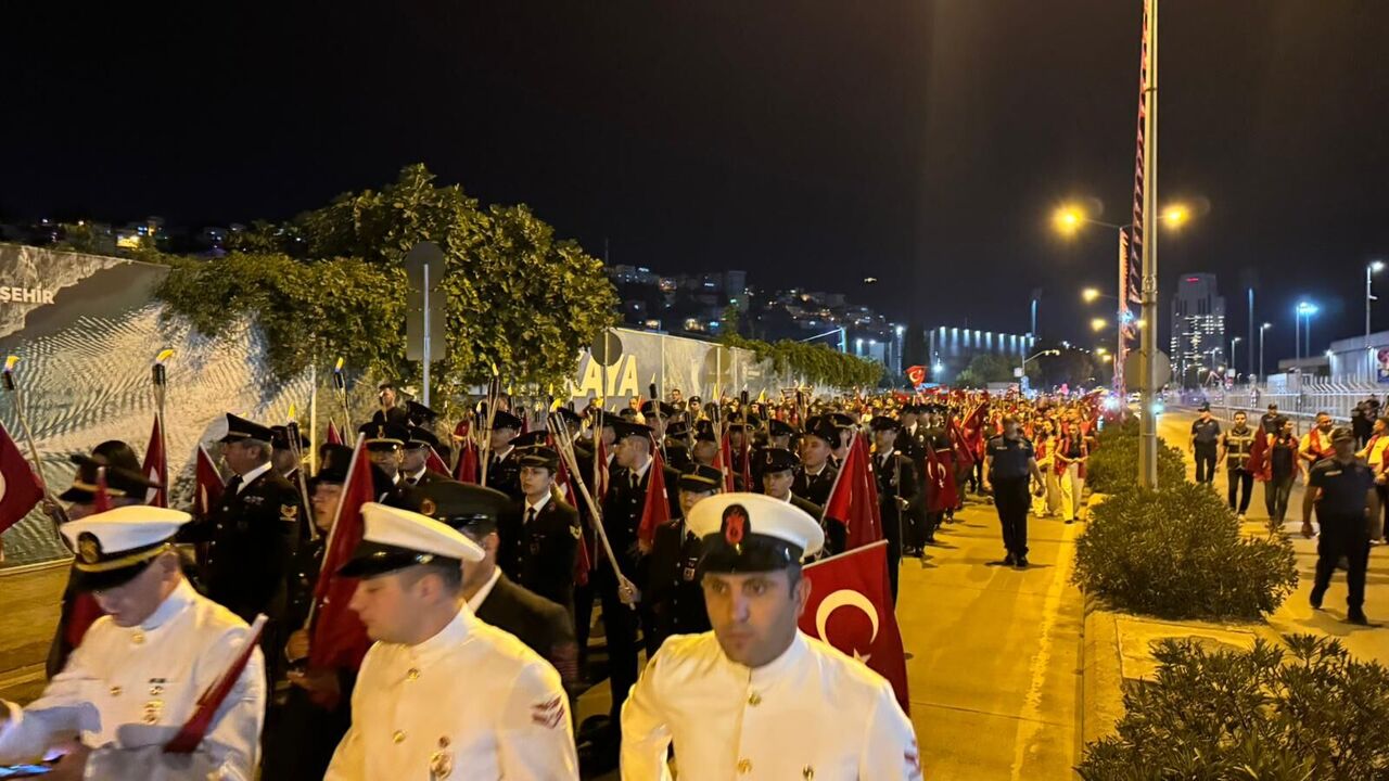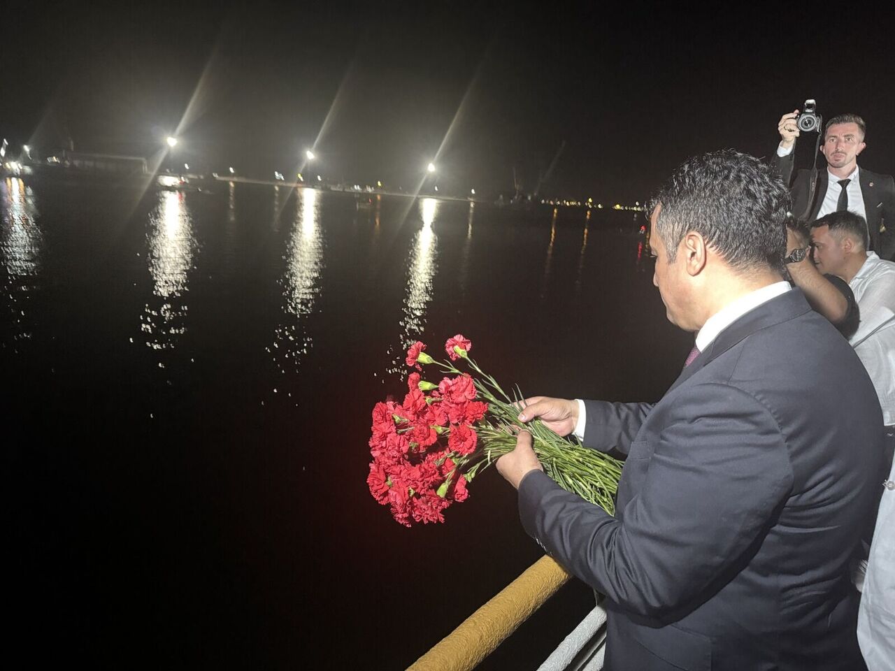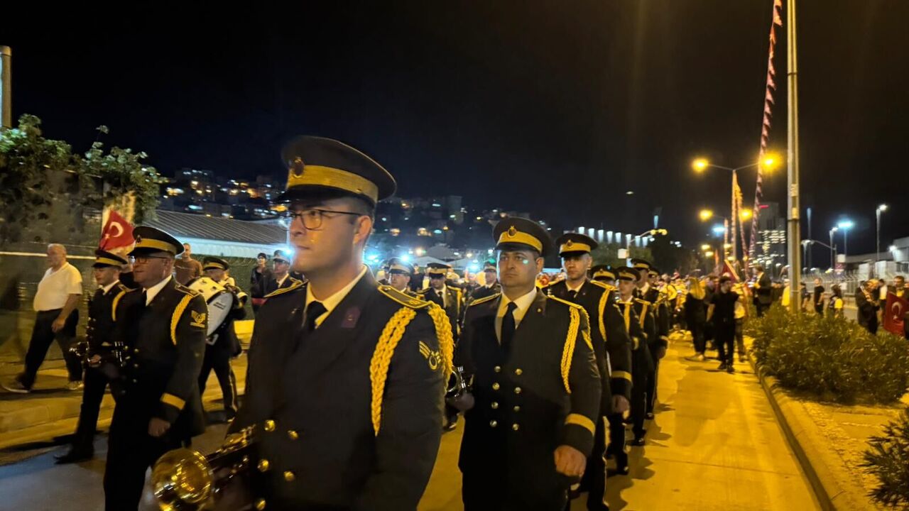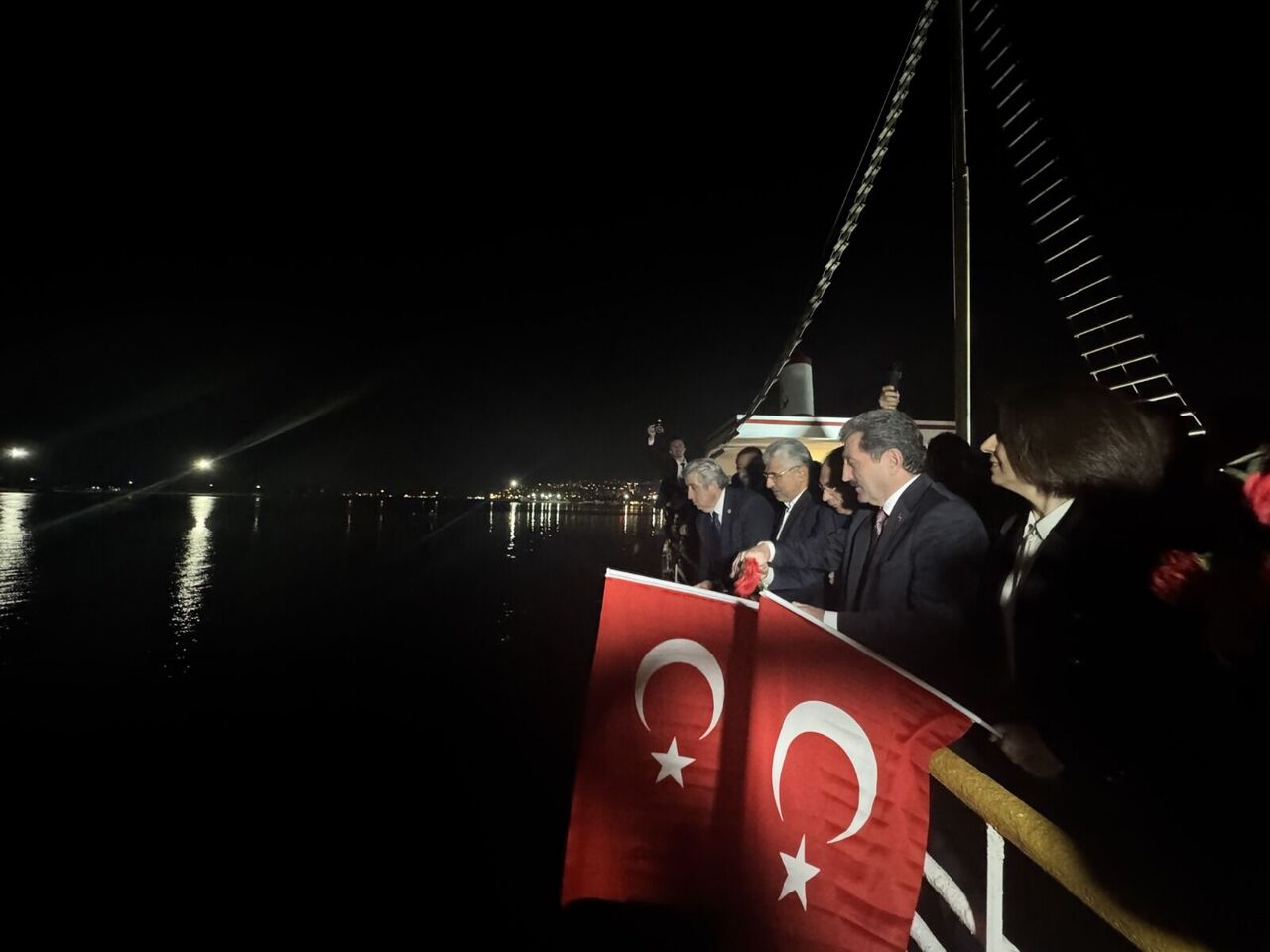 Tütün İskelesi’nde son bulan yürüyüşün ardından düzenlenen törende saygı duruşu ve İstiklal Marşı’nın okunmasının ardından başta Gazi Mustafa Kemal Atatürk olmak üzere tüm şehitlerin aziz ruhlarına dua edildi. Program kapsamında kolluk ve sivil gemilerle bayrak selamı verildi, denize karanfiller bırakıldı ve etkinlik havai fişek gösterisiyle sona erdi.